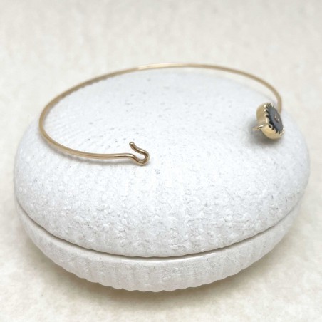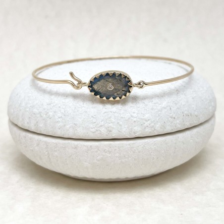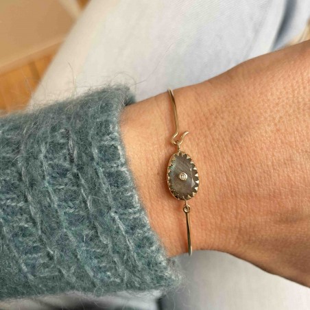 9K yellow gold bracelet set with a labradorite and 1 diamond.
