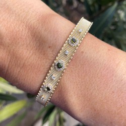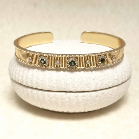 Yellow gold-plated brass bracelet set with tourmaline and zirconiums.