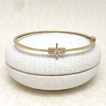 14K yellow gold bracelet set with one diamond.