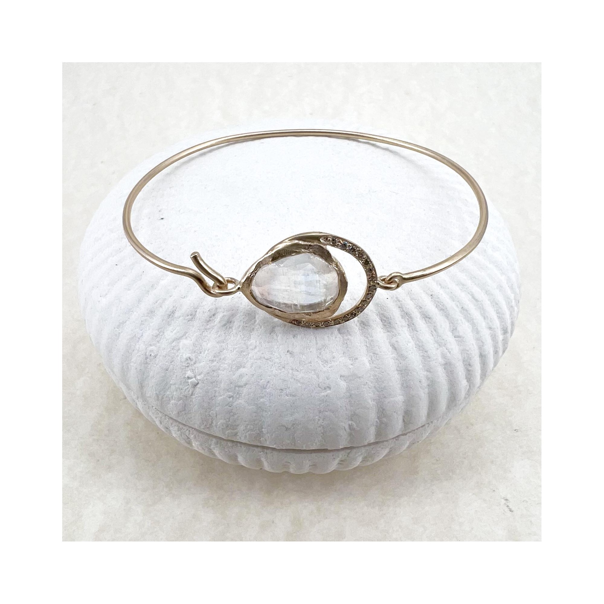 9k yellow gold bracelet set with a moonstone and diamonds.