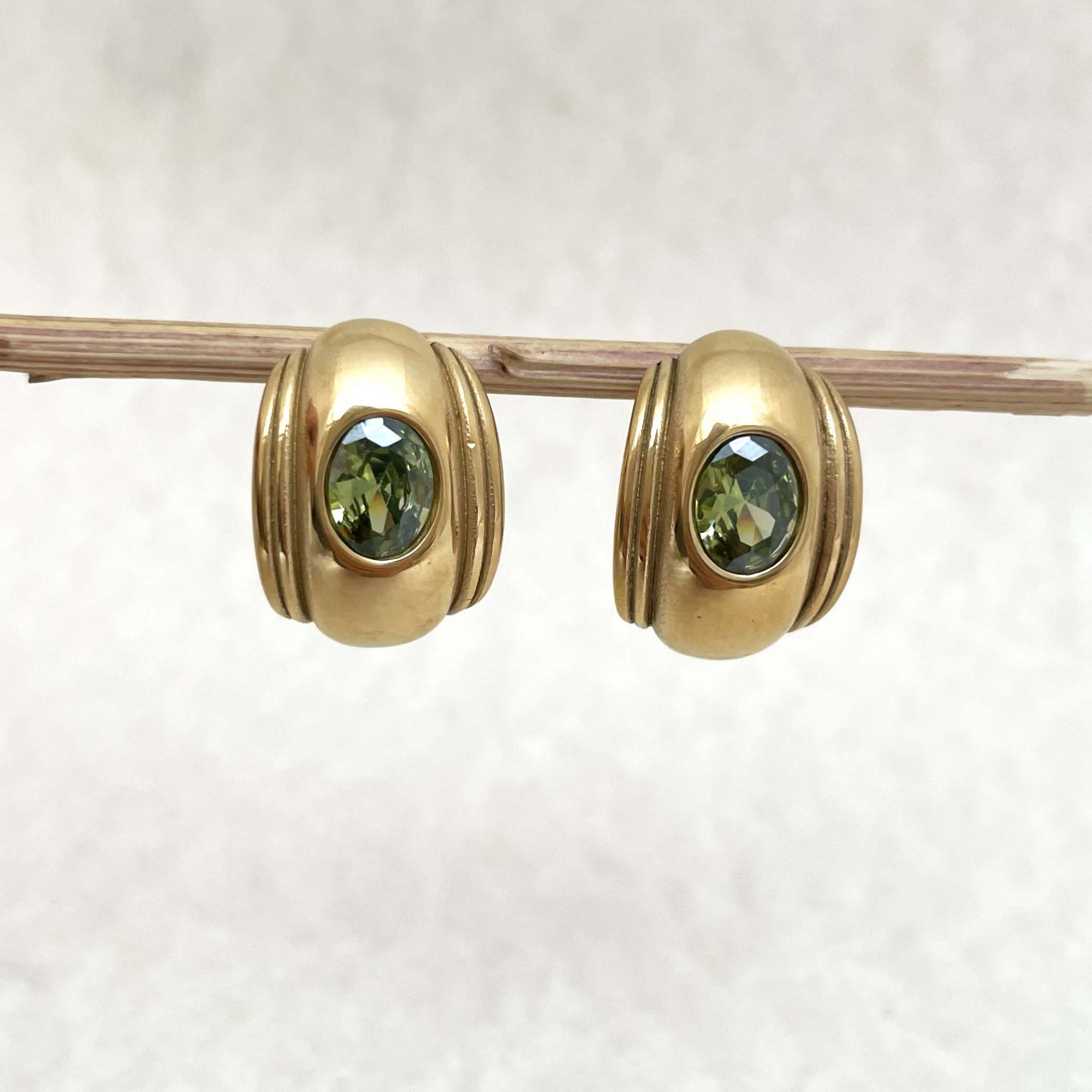 Yellow gold-plated stainless steel green earrings set with green zirconiums