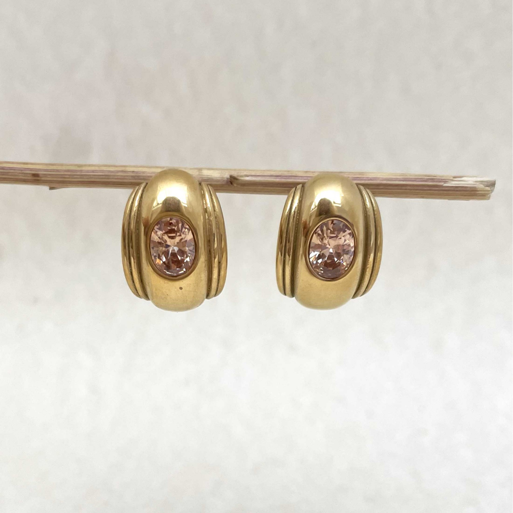 Yellow gold-plated stainless steel earrings set with zirconiums