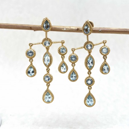 Yellow gold-plated brass earrings set with blue topaz