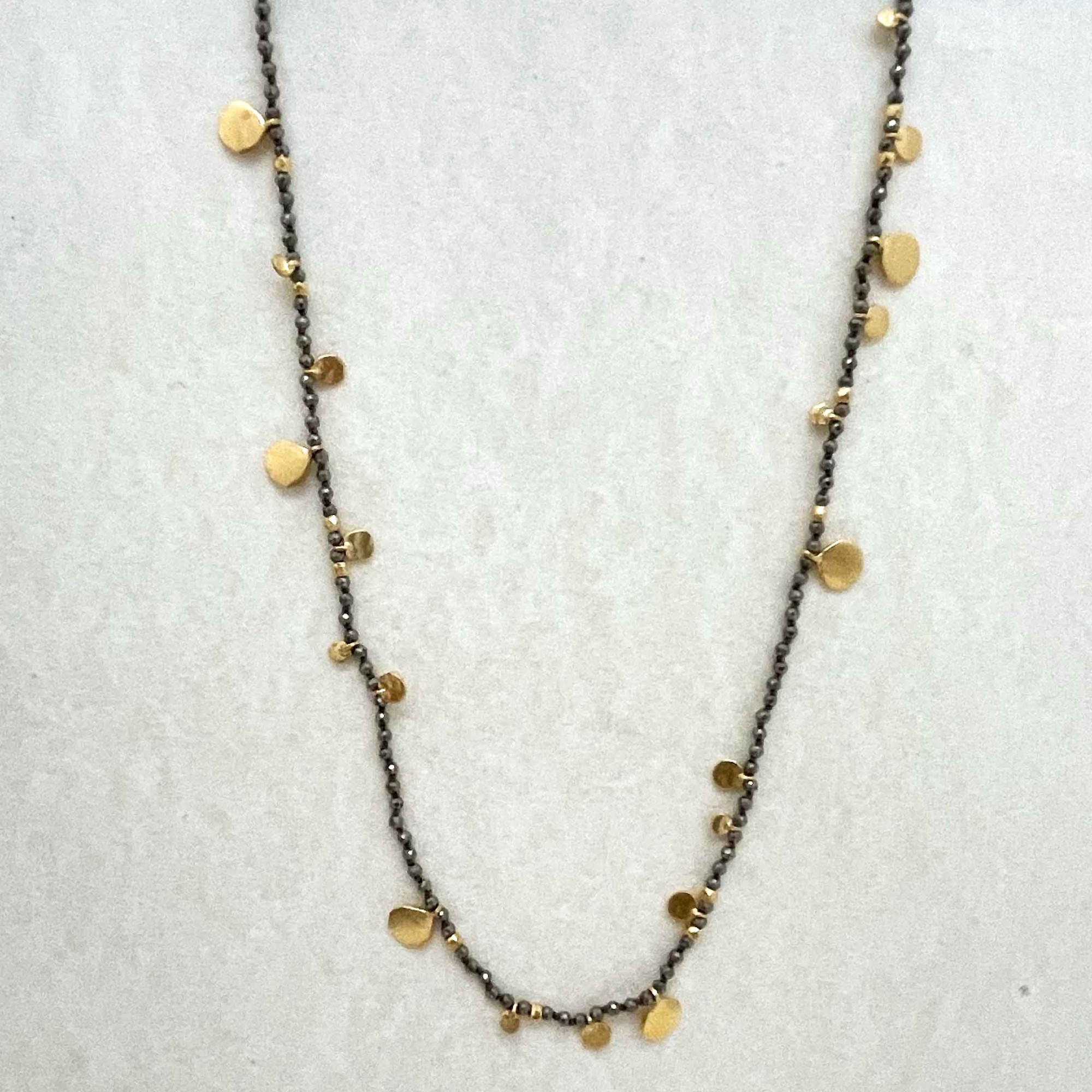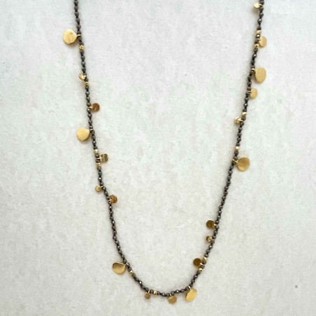 Yellow gold-plated sterling silver necklace set with semi-precious stones , pyrite