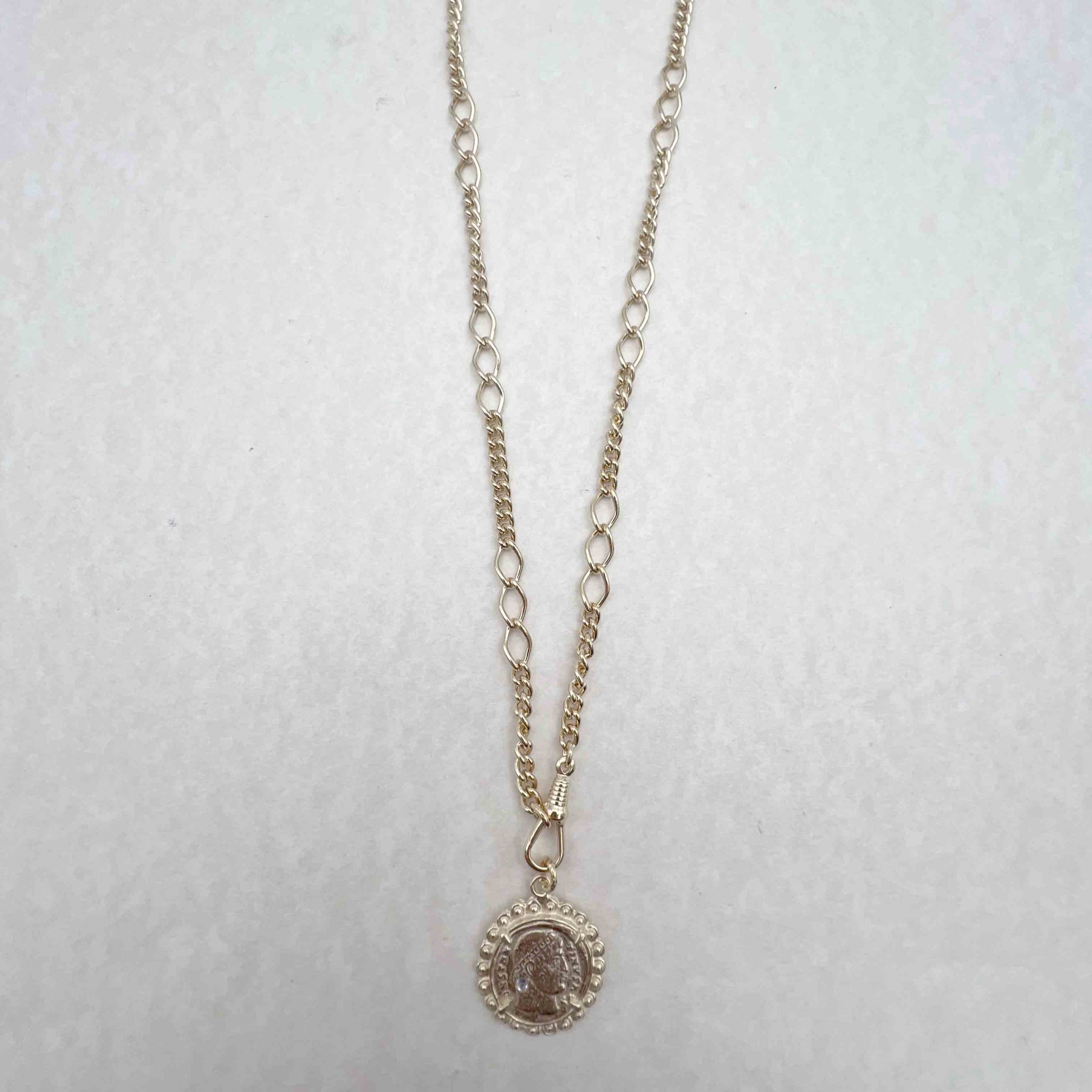 18k yellow gold-plated brass necklace set with a 2,5 cm diameter medal