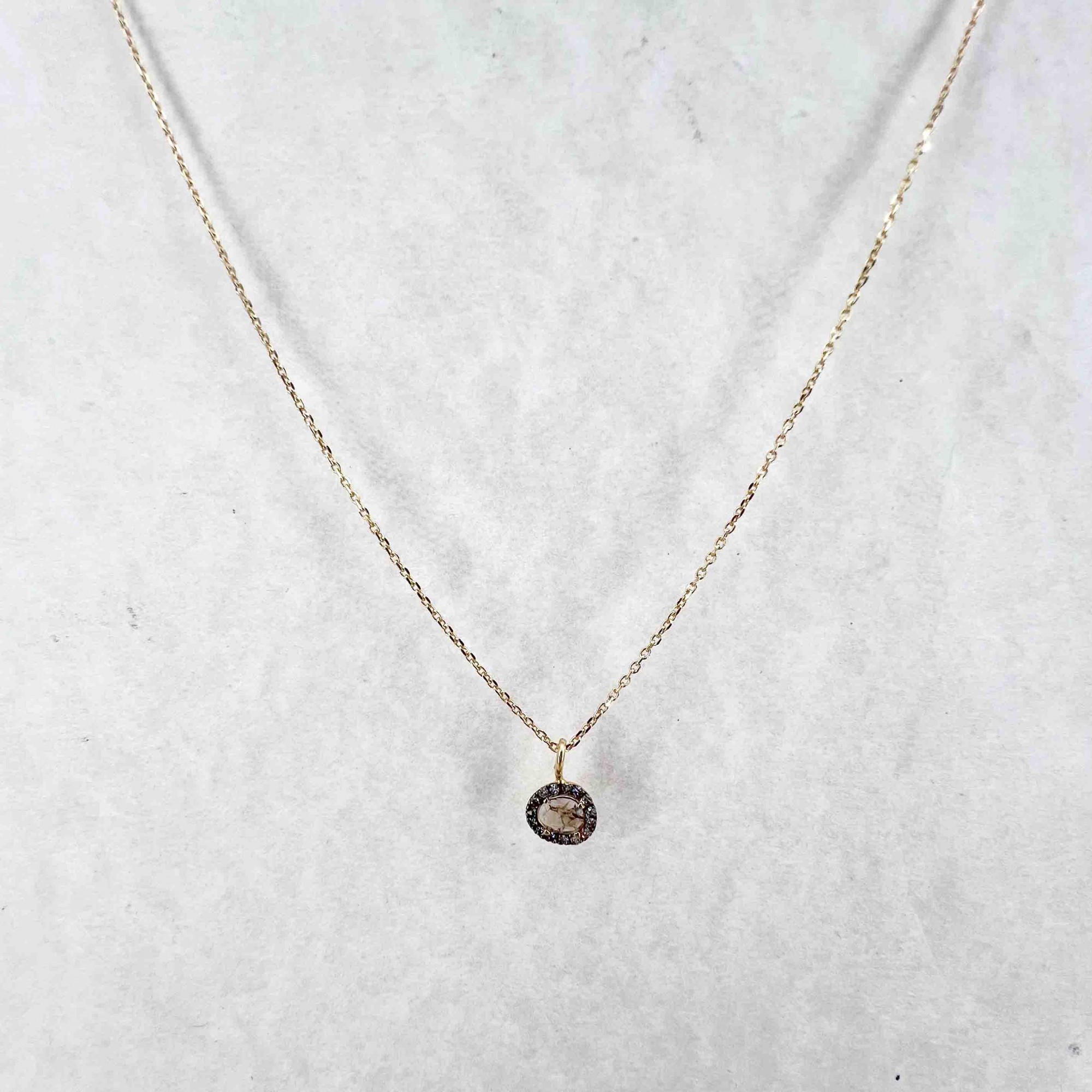 Yellow gold-plated sterling silver necklace set with a polki diamond and diamonds set in rhodium-plated sterling silver.