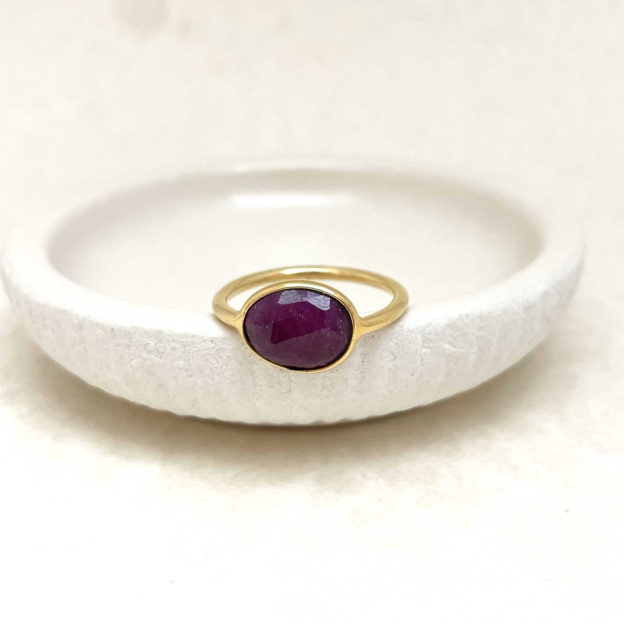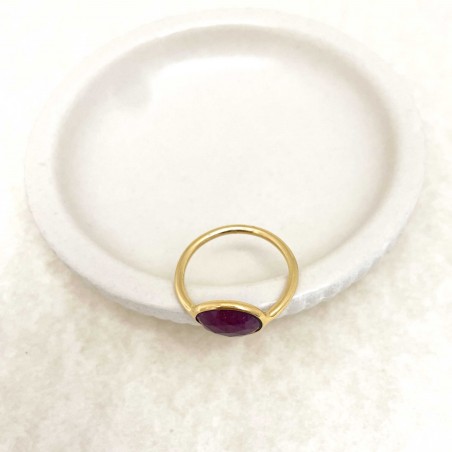 Yellow gold-plated brass ring set with a ruby