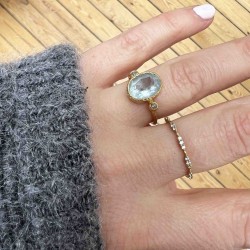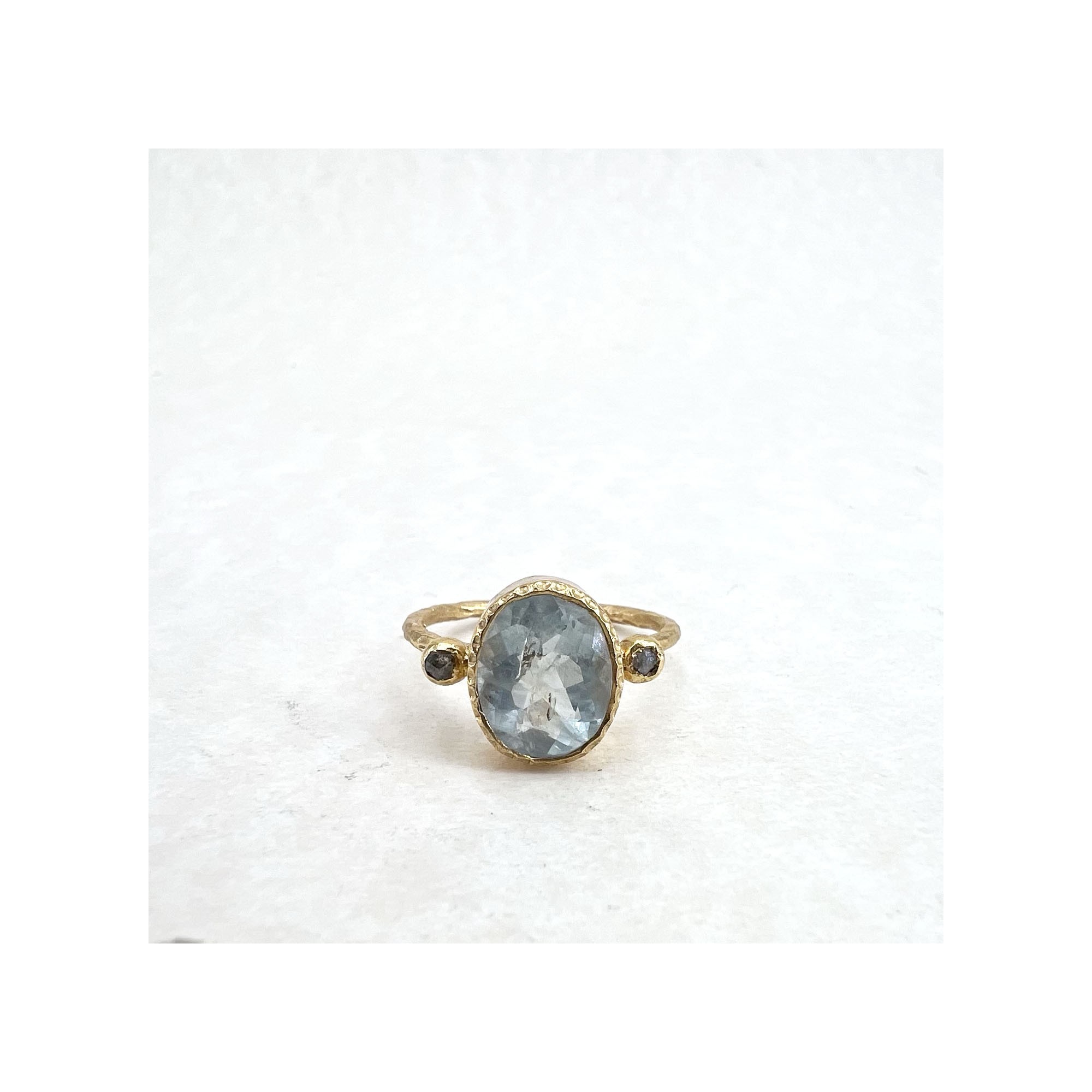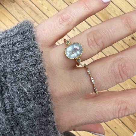 Yellow gold-plated sterling silver ring set with an aquamarine and 2 polki diamonds.