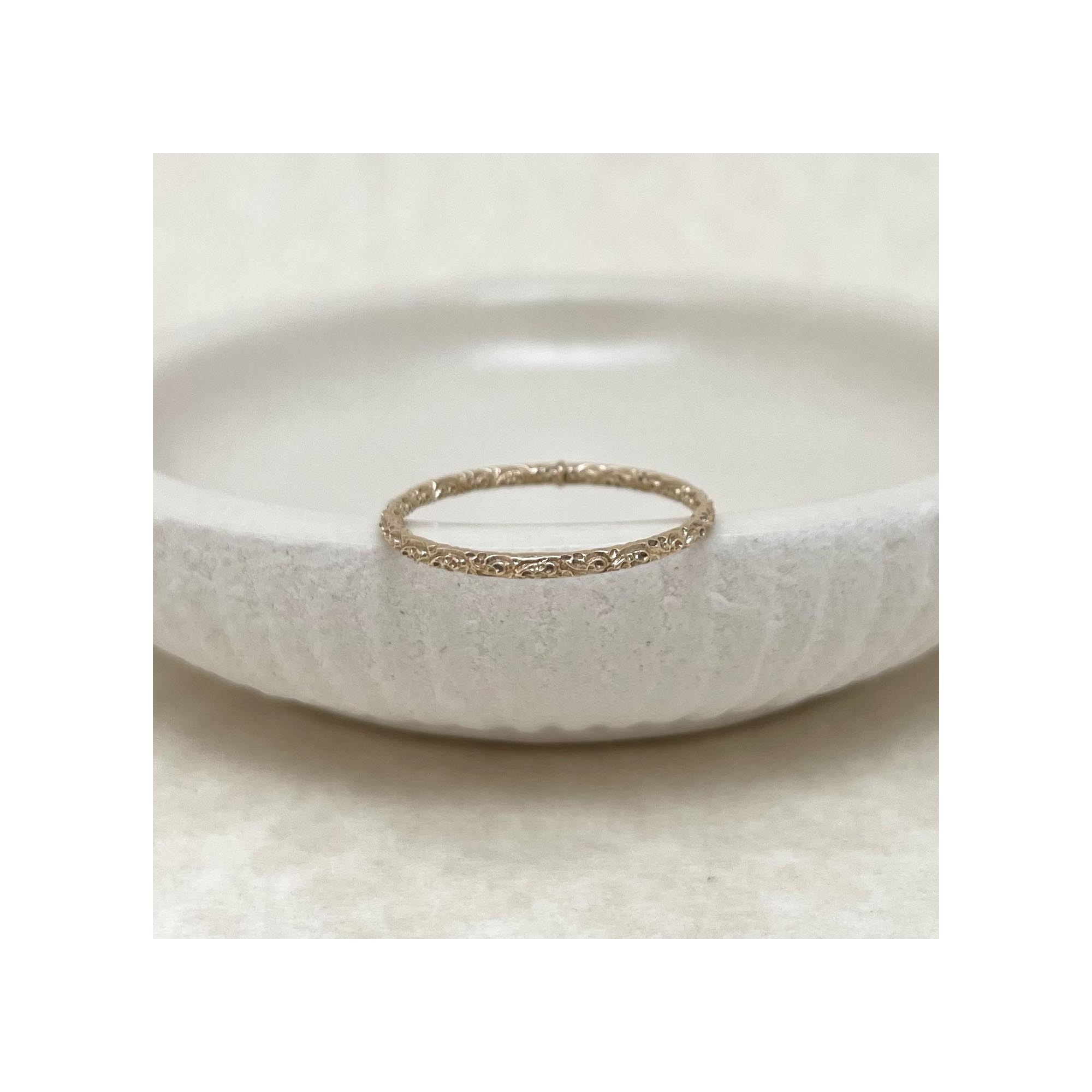 Bague texturée en or jaune 9 carats, inspirée des motifs de mandala.
