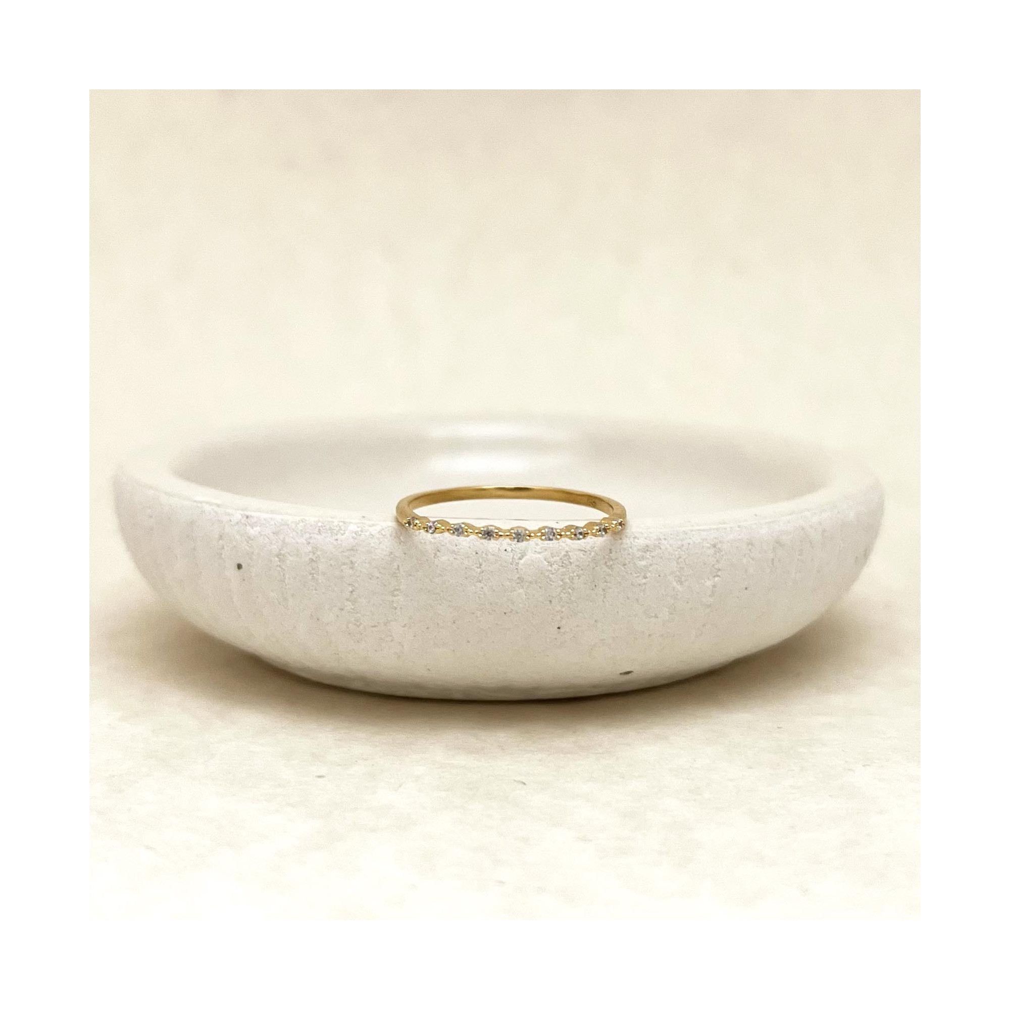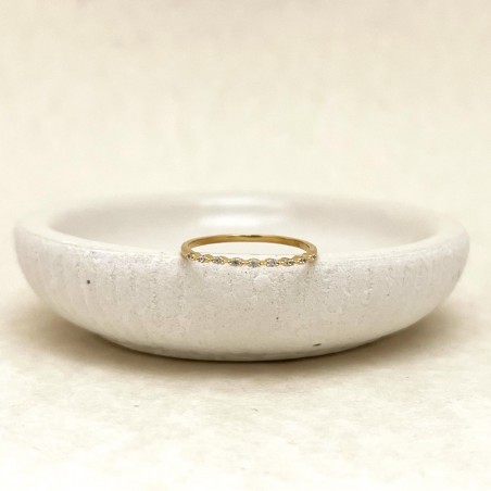Bague en laiton plaquée à l'or jaune et montée avec des zirconiums.