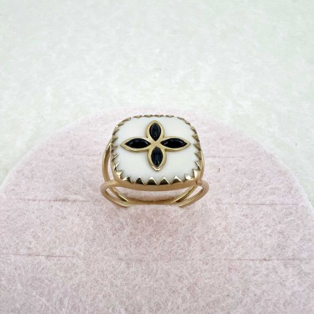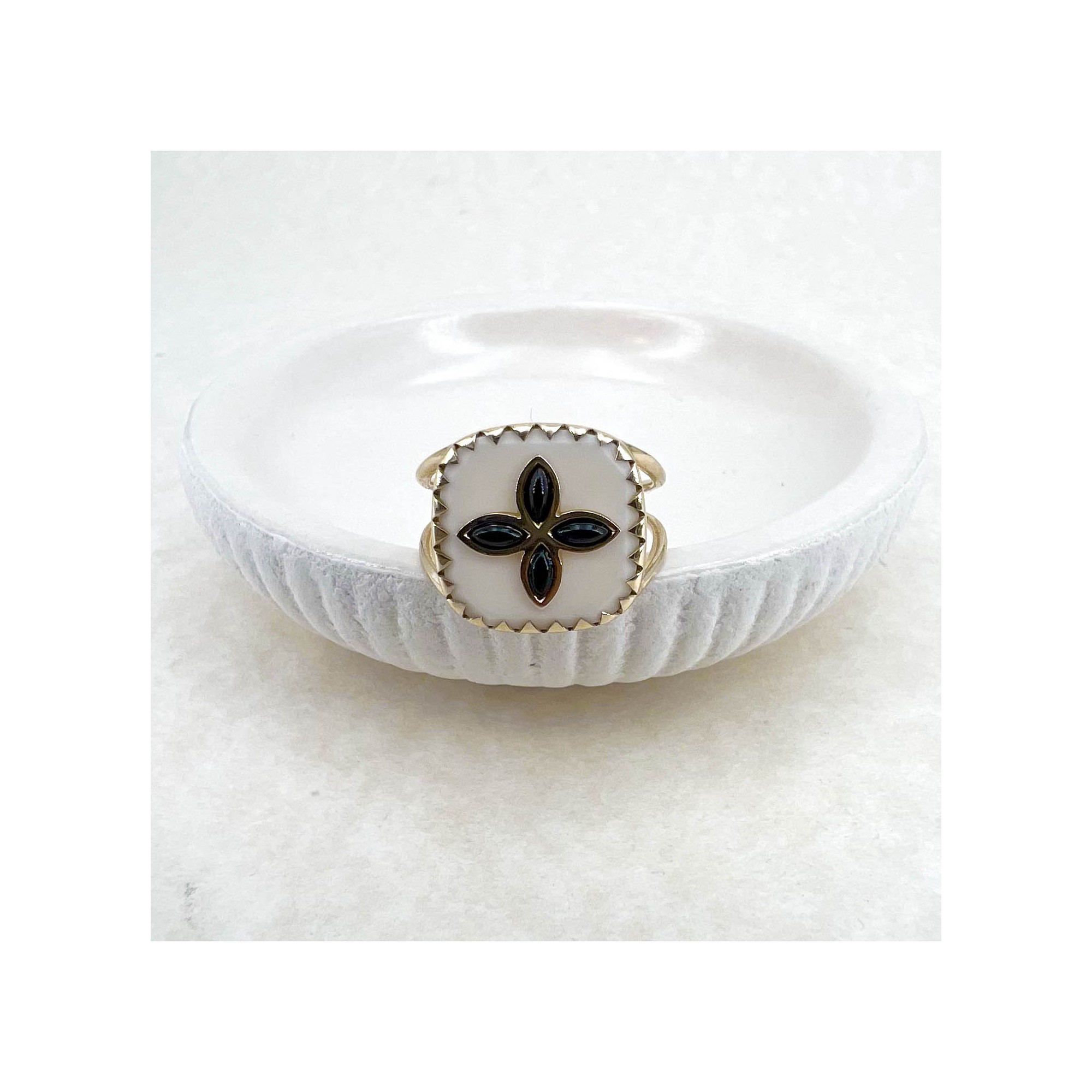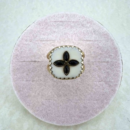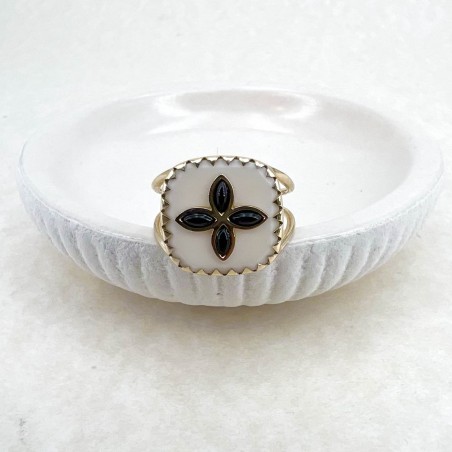 Bague en or jaune 9 carats montée avec de la résine et de l'onyx