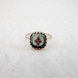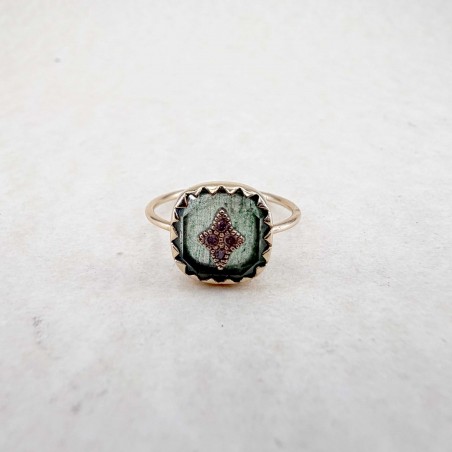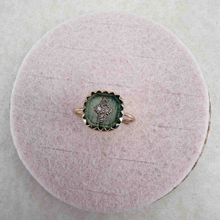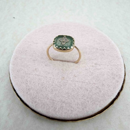Bague en or jaune 9 carats montée avec un aventurine quartz et des diamants.