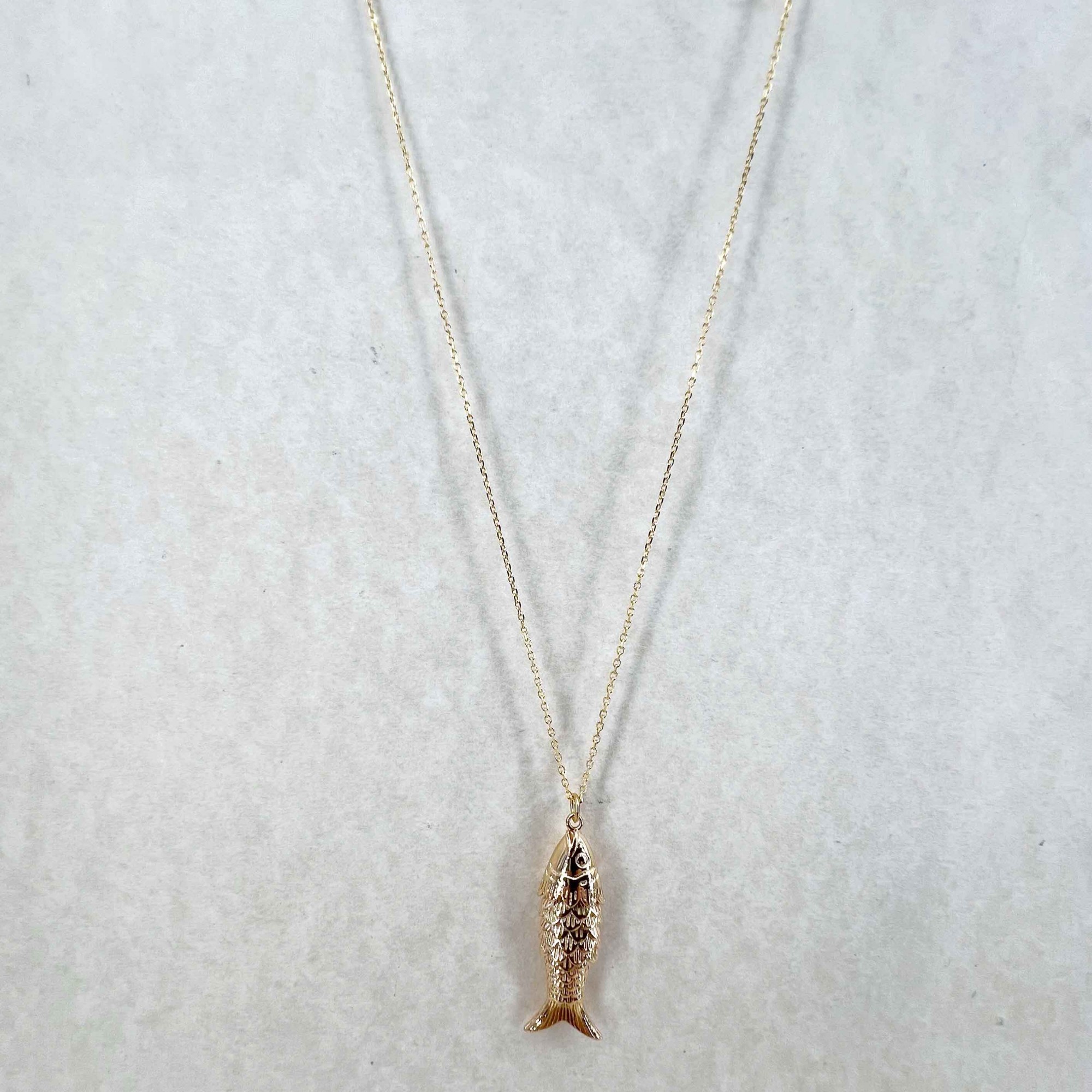 Collier de 50 cm monté avec un poisson articulé de 2,5 cm en plaqué or jaune 3 microns.