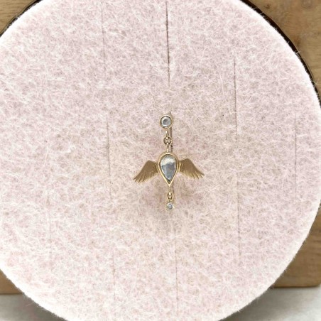 Boucle d'oreille en or jaune 14 carats montée avec une pierre de lune et des diamants.