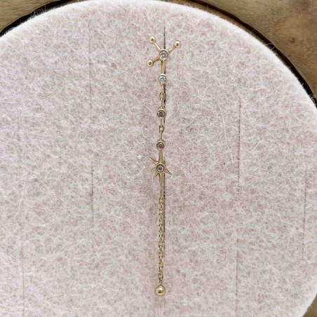 Boucle d'oreille en or jaune 14 carats montée avec des diamants