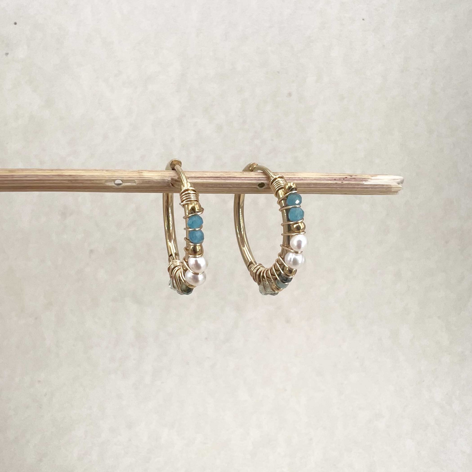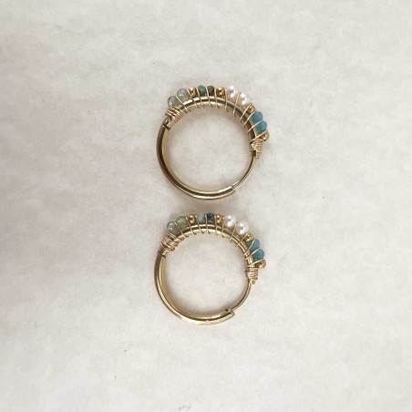 Boucles d'oreilles en argent plaquées à l'or jaune et montées avec des pierres semi-précieuses
