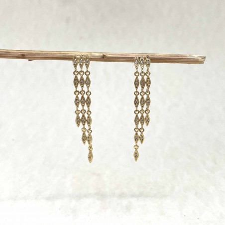 Boucles d'oreilles en laiton plaquées à l'or jaune et montées avec des zirconiums