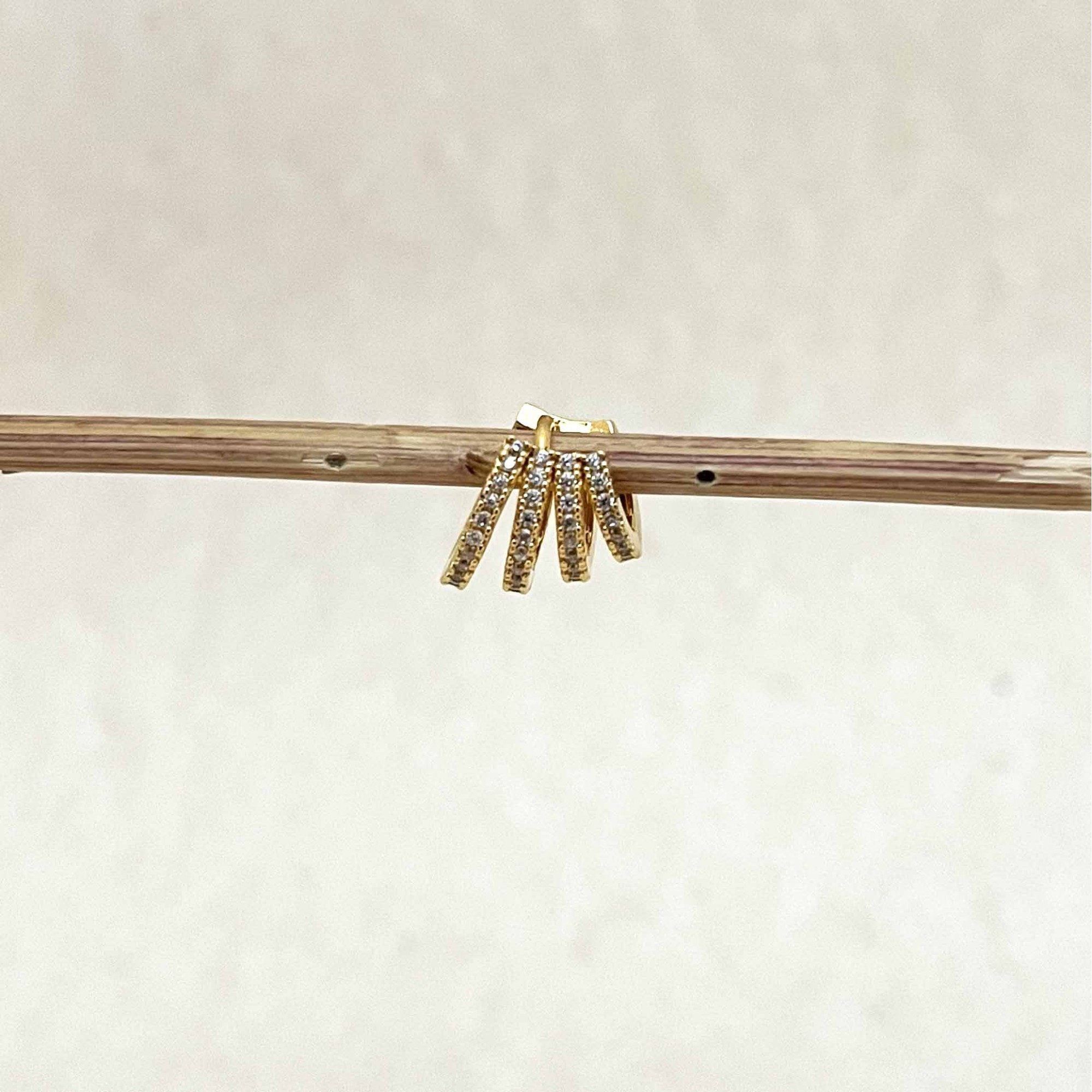 Boucle d'oreille en laiton plaquée à l'or jaune et montée avec des zirconiums.