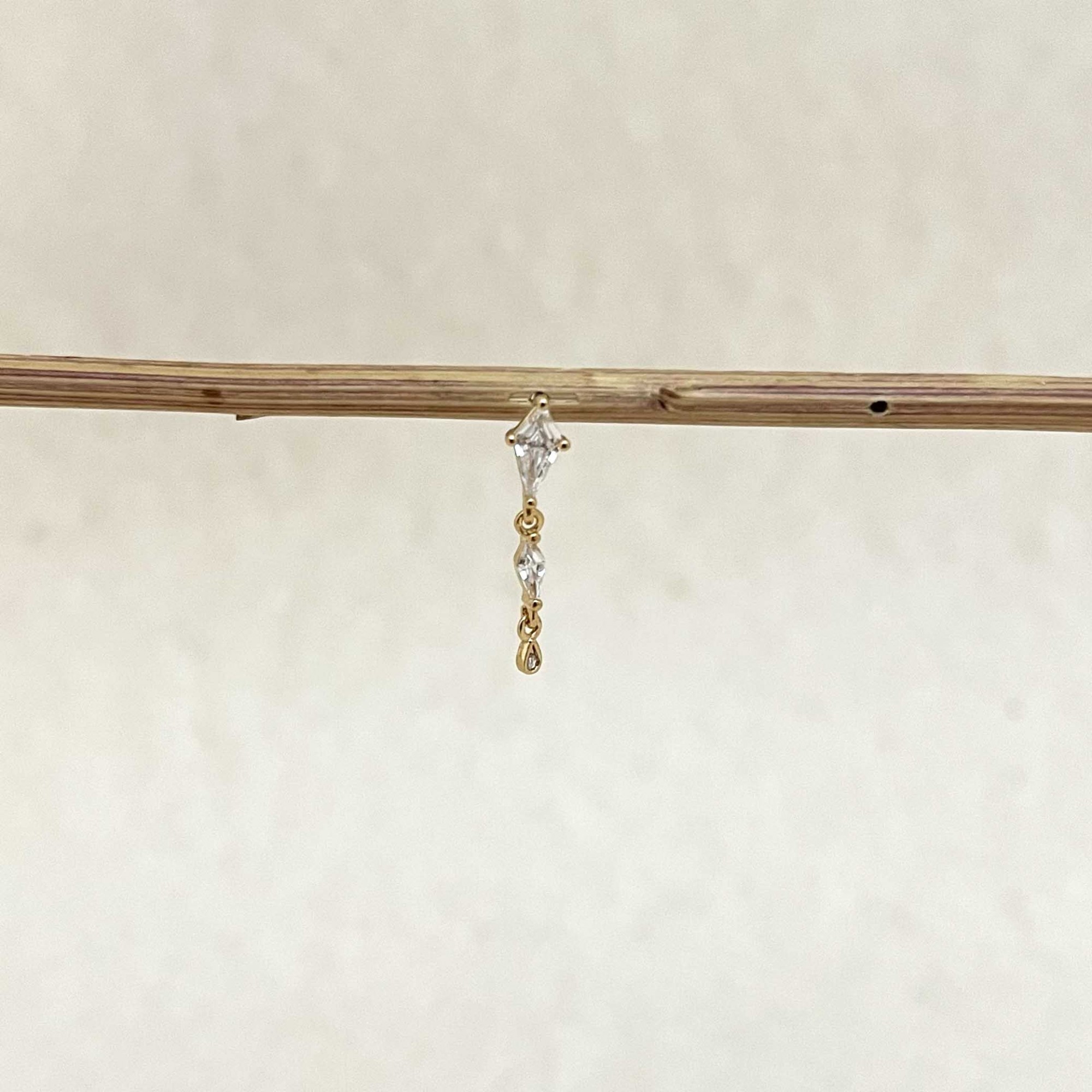 Boucle d'oreille en laiton plaquée à l'or jaune et montée avec des zirconiums.