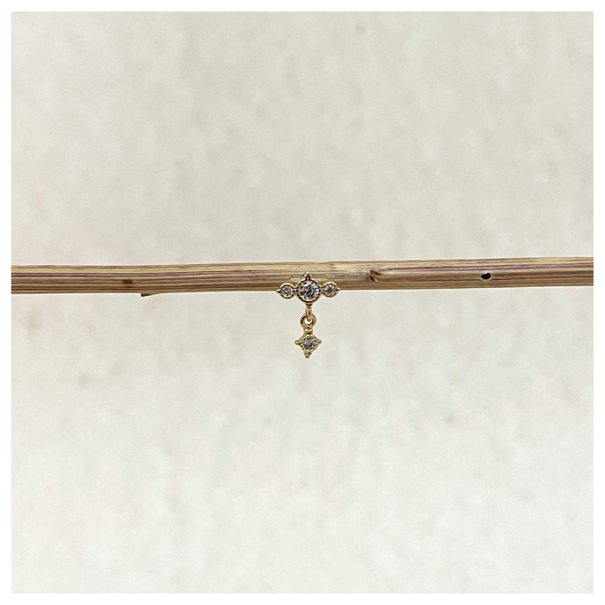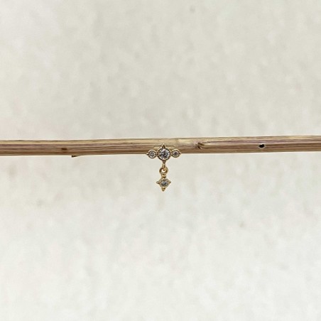 Boucle d'Oreille en laiton plaquée à l'o jaune et montée avec des zirconiums.