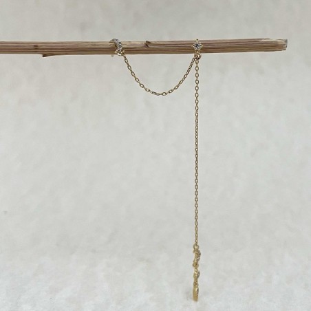 Boucle d'oreille en laiton plaquée à l'or jaune et montée avec des zirconiums