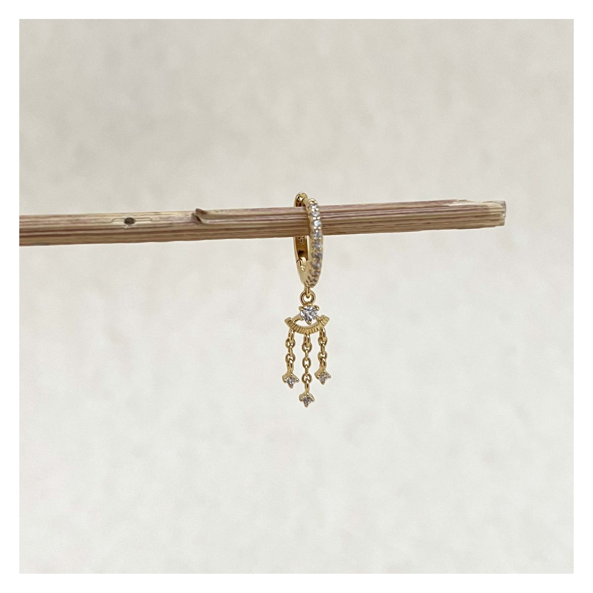 Boucle d'Oreille en laiton plaquée à l'o jaune et montée avec des zirconiums.