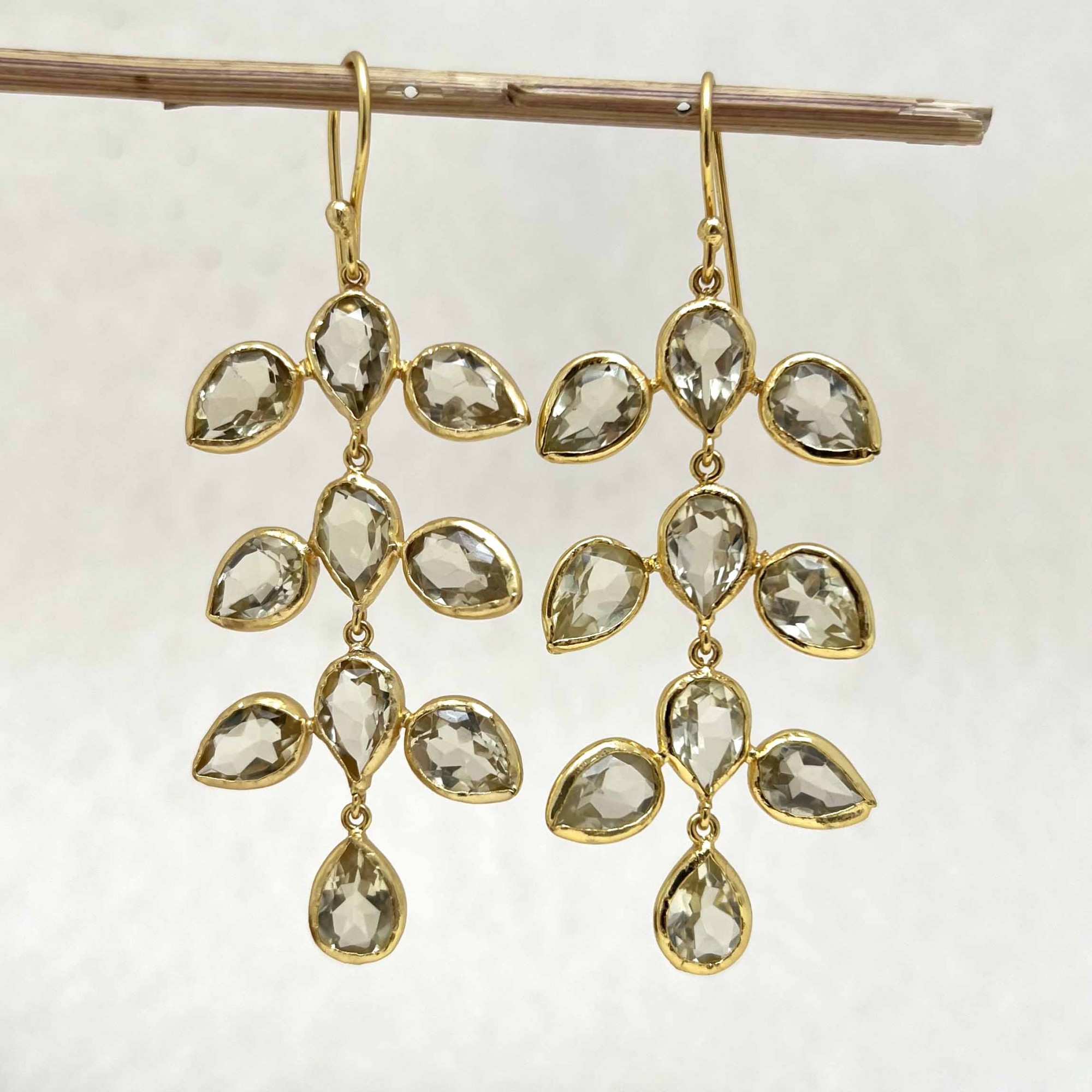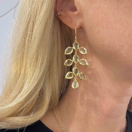 Boucles d'oreilles en laiton plaquées à l'or jaune ornées de lemon quartz.