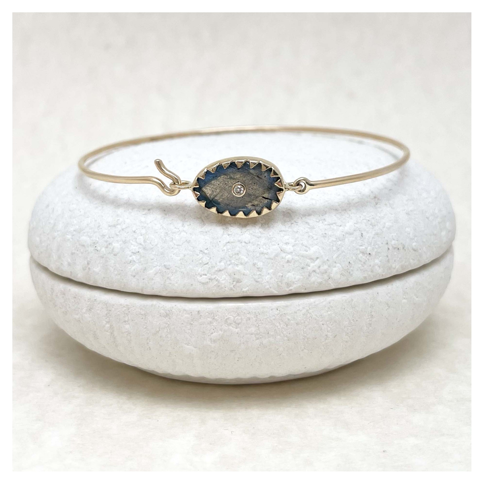 Bracelet en or jaune 9 carats monté avec une labradorite et serti d'un diamant.