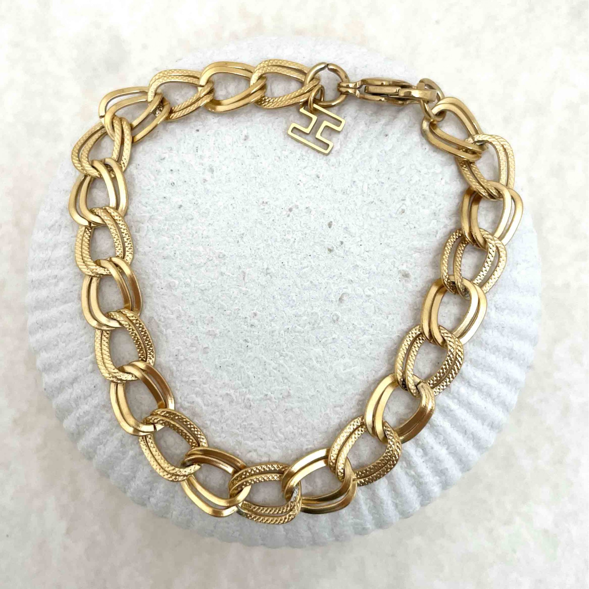 Bracelet en acier inoxydable plaqué à l'or jaune.