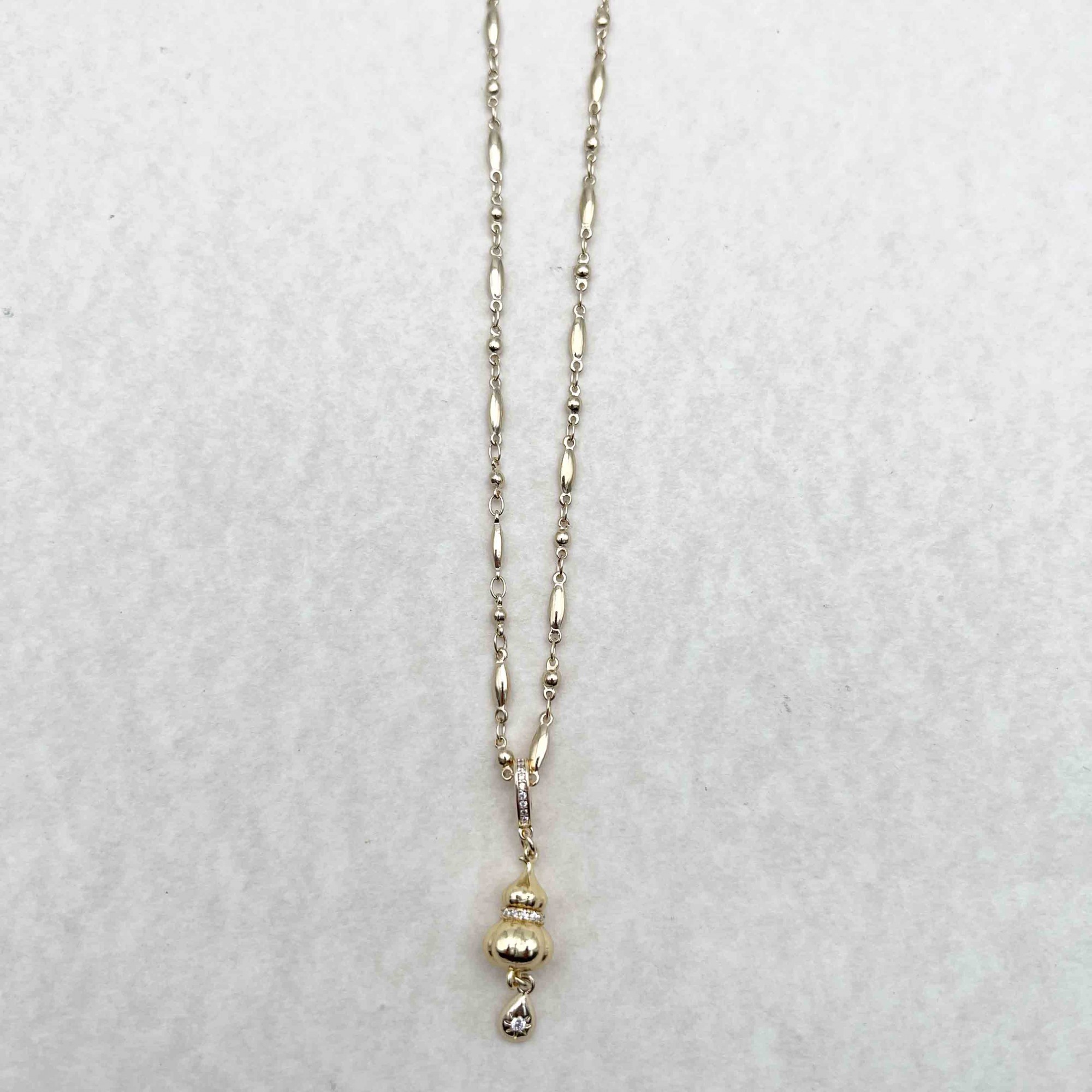 Collier en laiton plaqué à l'or jaune 18k monté avec une toupie de 2 x 1 cm et serti de zirconium blanc.