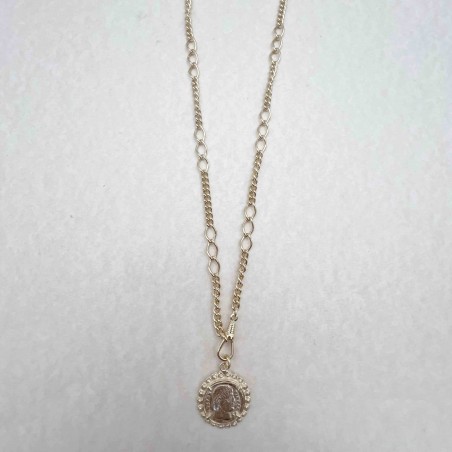 Collier en laiton plaqué à l'or jaune 18k monté avec une médaille de 2,5 cm de diamètre
