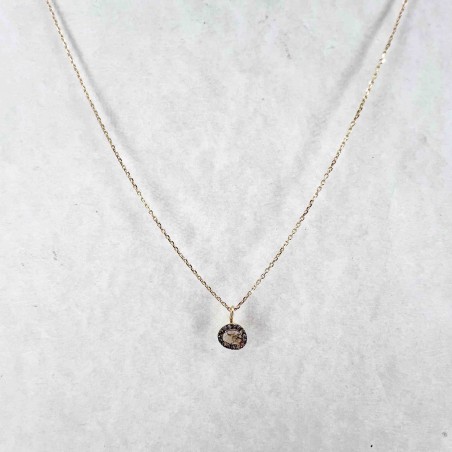 Collier en argent 925 plaqué à l'or jaune et monté avec un diamant polki entourée de diamants sertis sur de l'argent rhodié.
